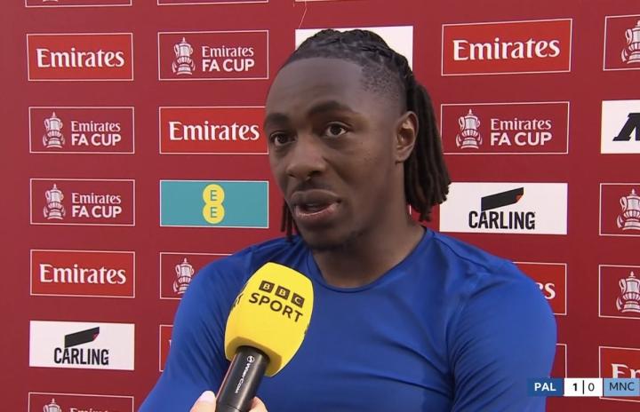 水晶宫球员埃泽在足总杯决赛中扮演了英雄的角色,打进全场唯一进球,帮助球队1-0击败曼城,夺得了冠军。赛后,埃泽接受了媒体的采访。他的脸上洋溢着胜利的喜悦,眼中闪烁着坚定的目光。
